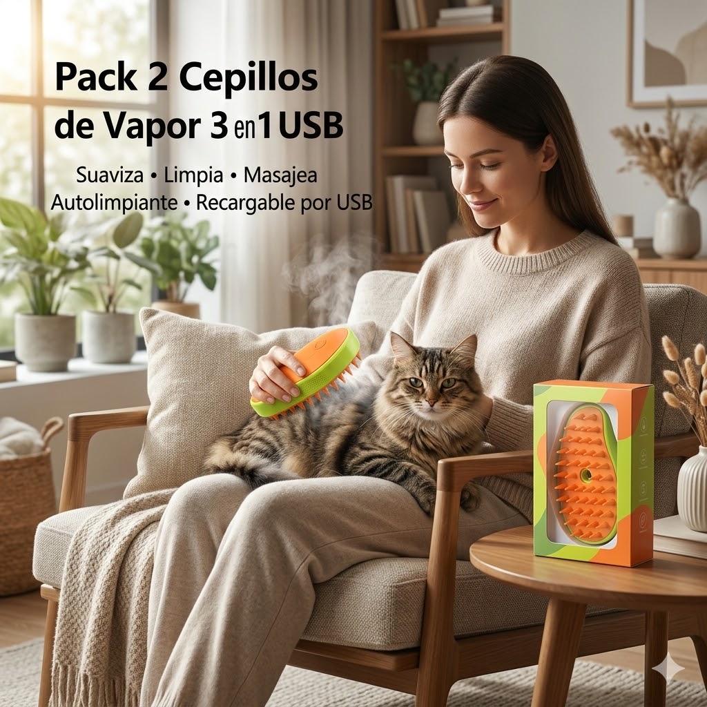 Pack 2 Cepillos de Vapor para Mascotas USB – Limpieza y Masaje
