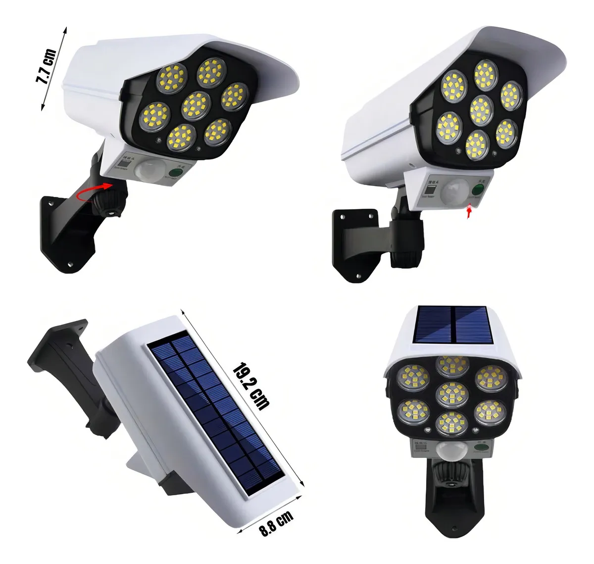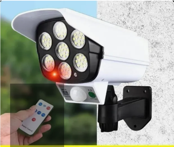 Cámara de seguridad falsa inalámbrica para exteriores. Luz LED Solar con Sensor de movimiento, lámpara impermeable de 3 modos para el hogar y el jardín. Luz Solar y cámara simulada de seguridad Protege tu hogar con 77 LEDs brillantes, activado por movimiento, más cámara de seguridad simulada realista. Luz de advertencia roja parpadea por la noche, detecta intrusos mantener alejado de tu hogar